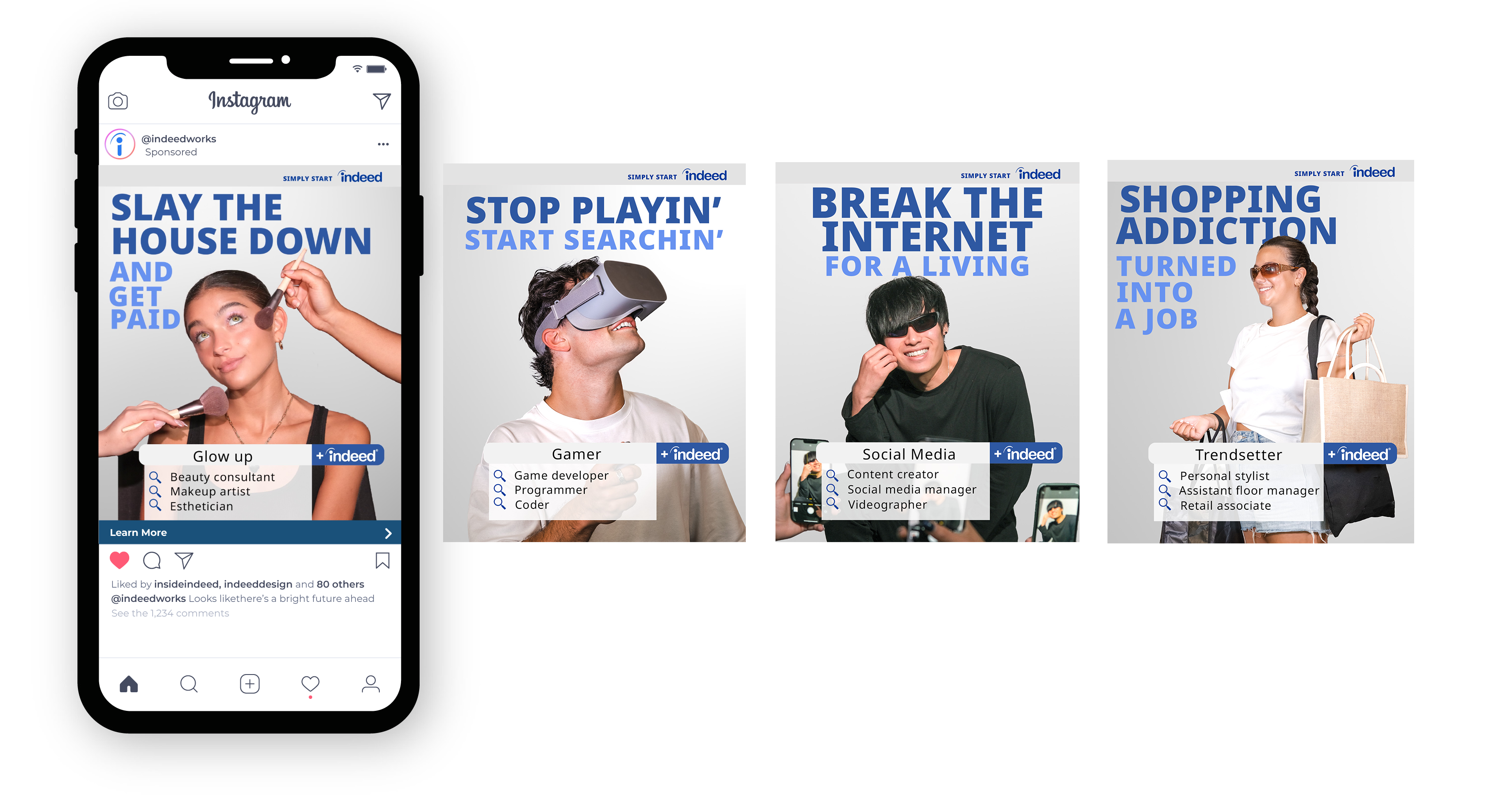 To bring the simplicity of Indeed to life, we created coffee bar pop-ups around the popular cities Gen Z is most notably moving to, in partnership with Chamberlain Coffee by Emma Chamberlain, a successful influencer who made it to the top by simply starting.